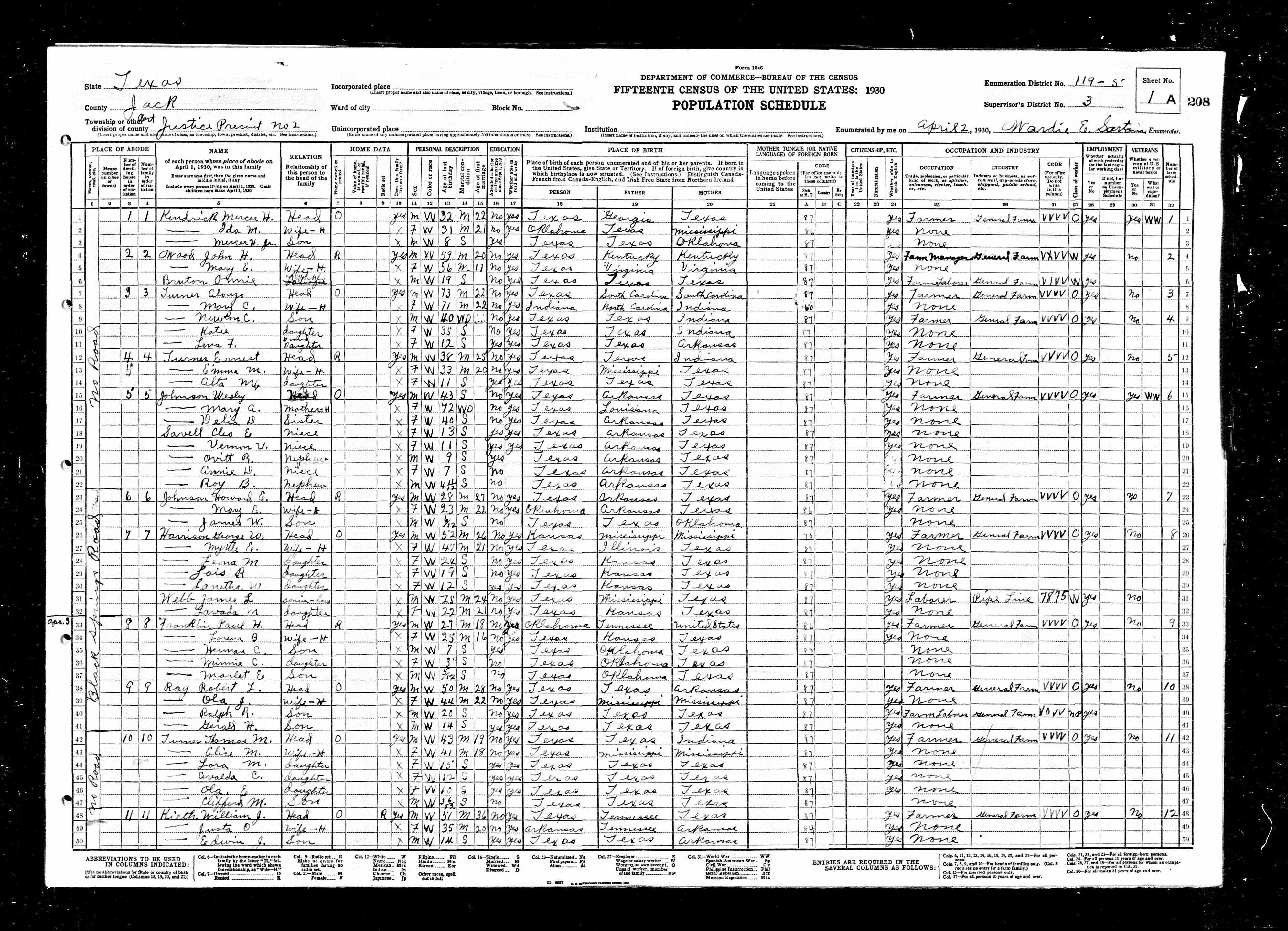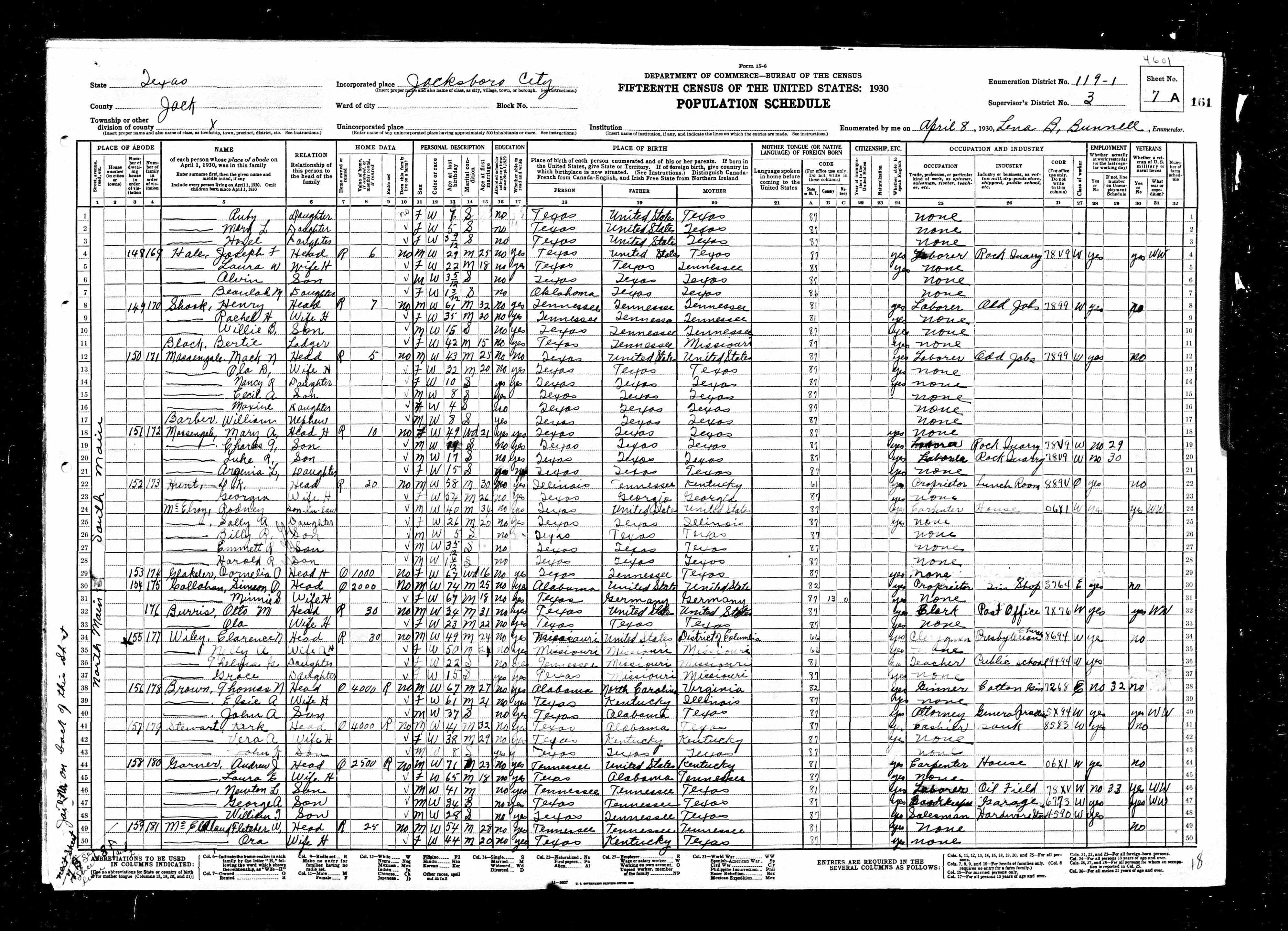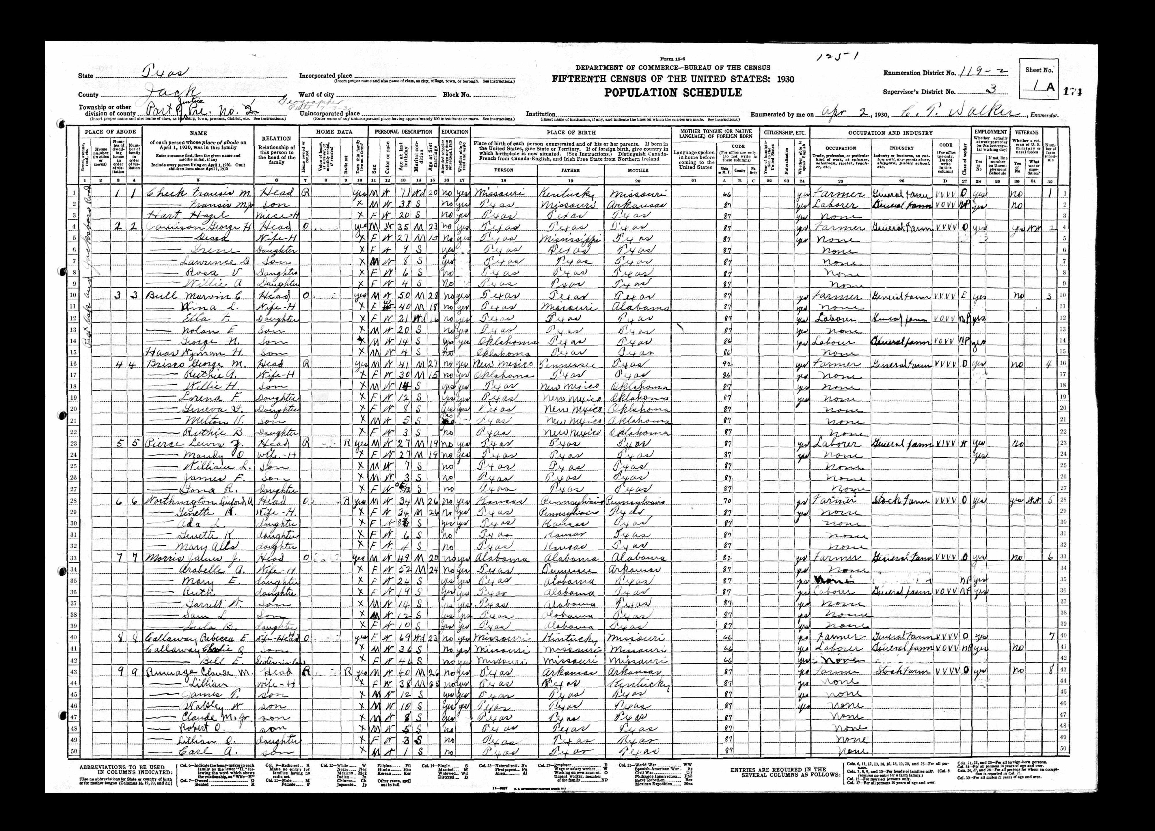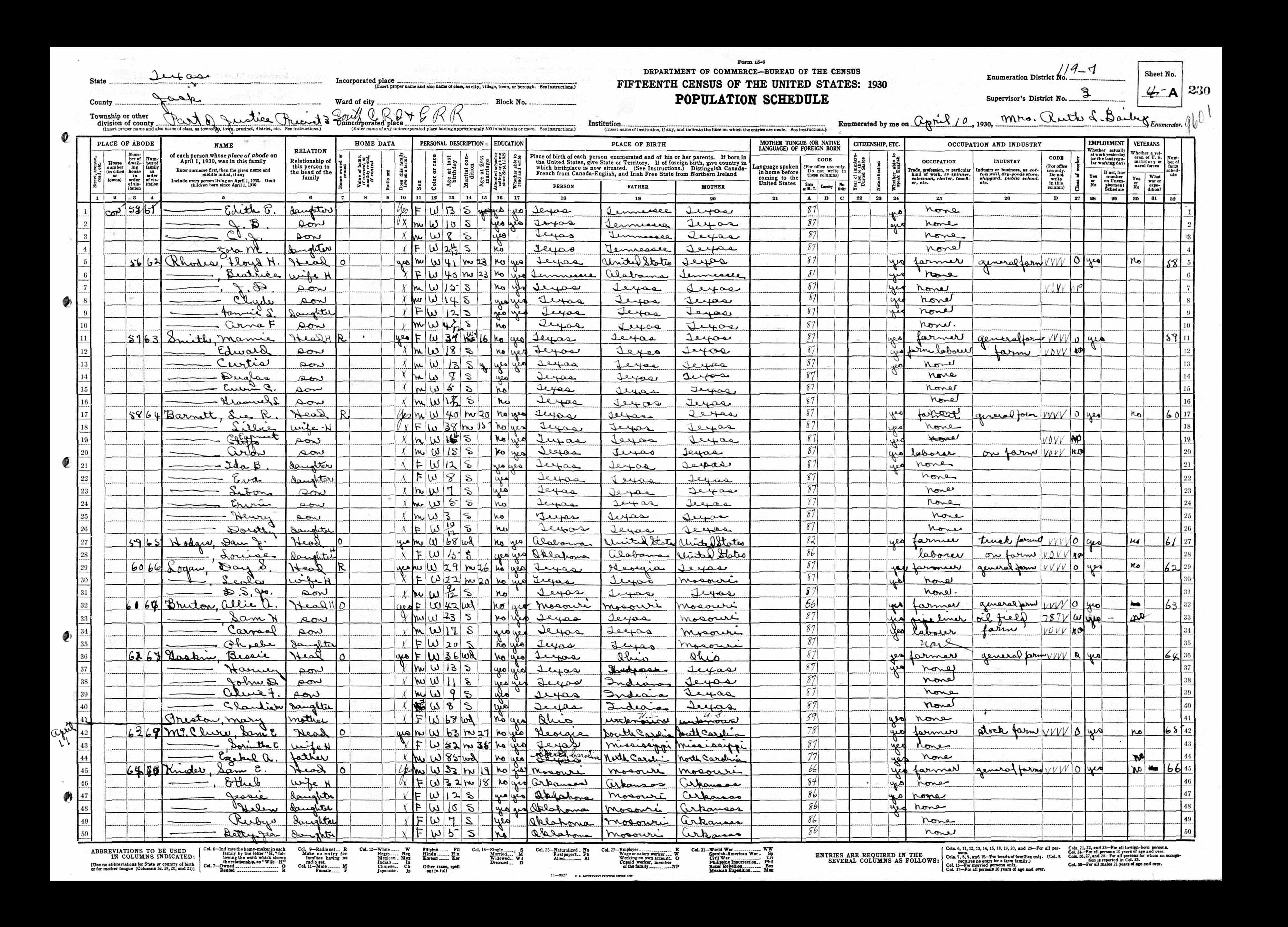 | Links to Large Images of Handwritten 1930 Census Pages | |||||||||||||||||||||