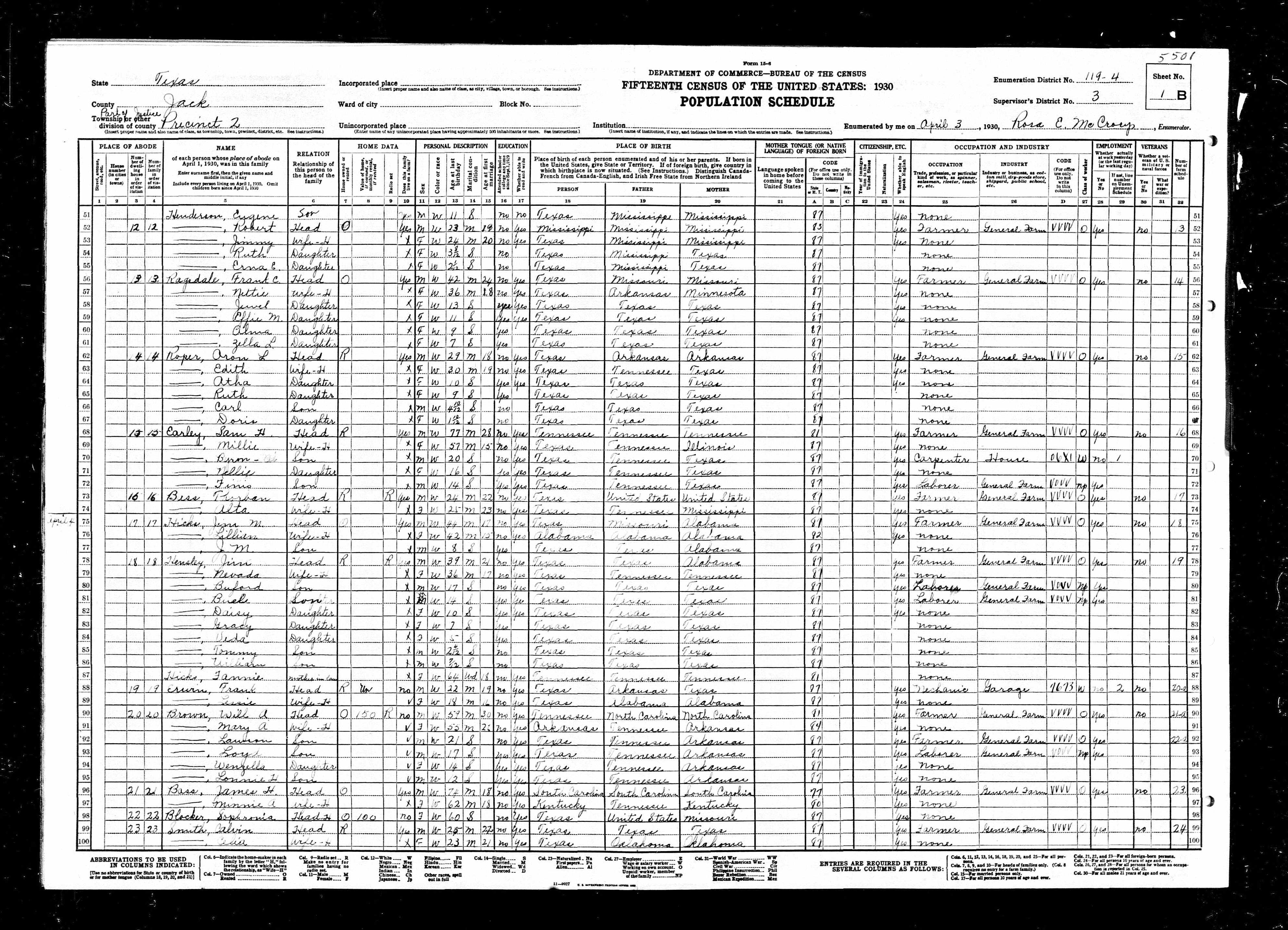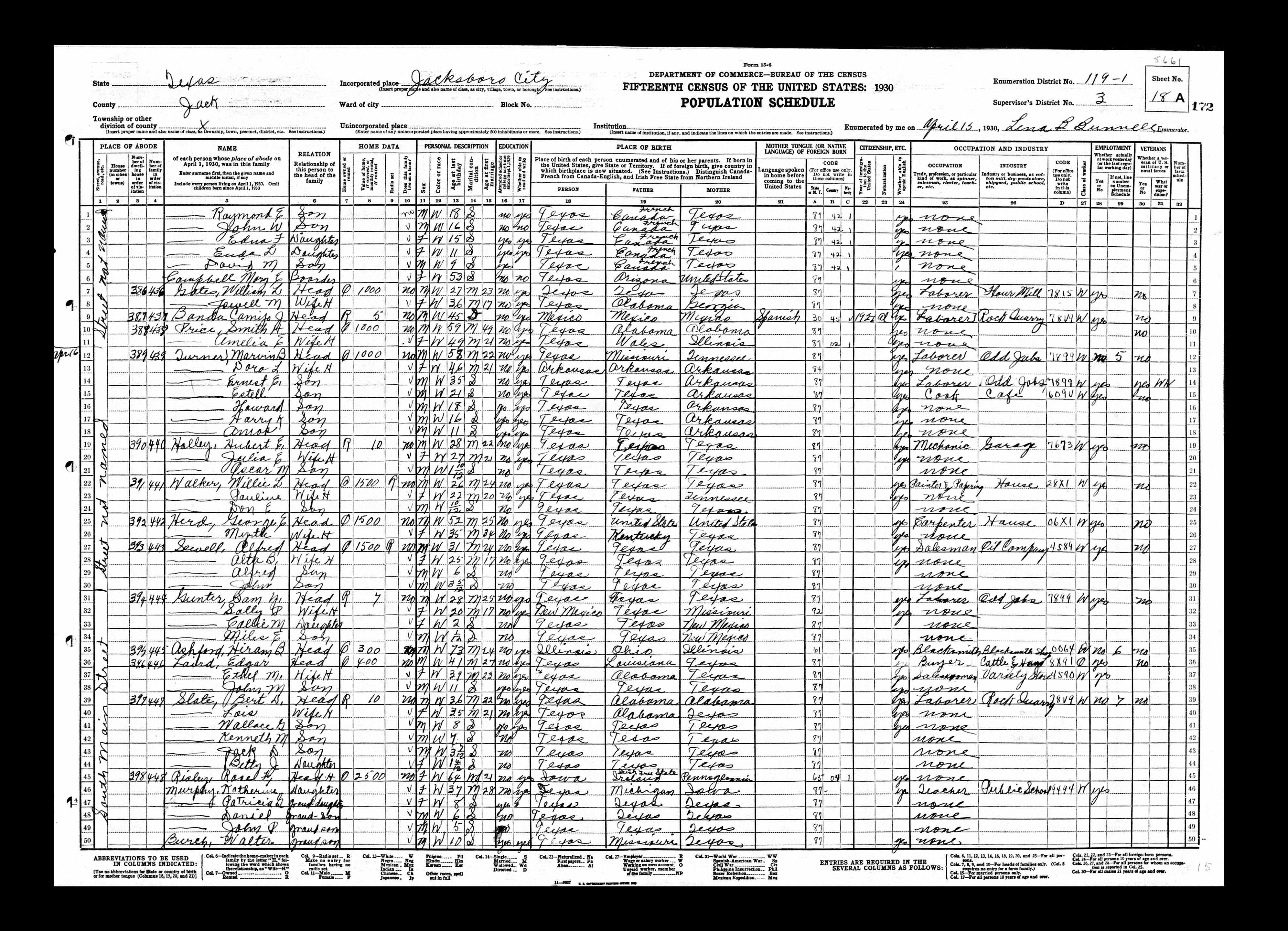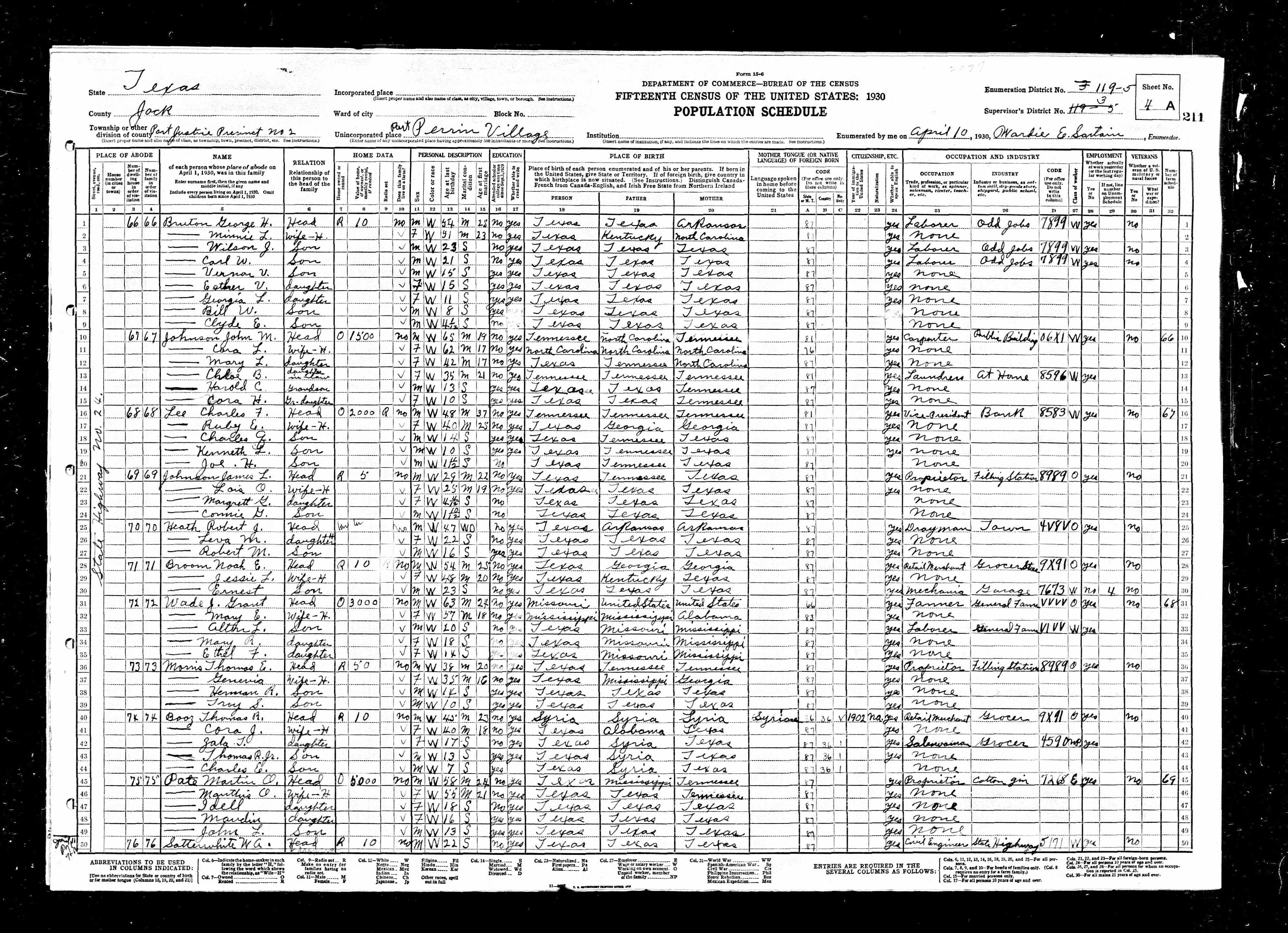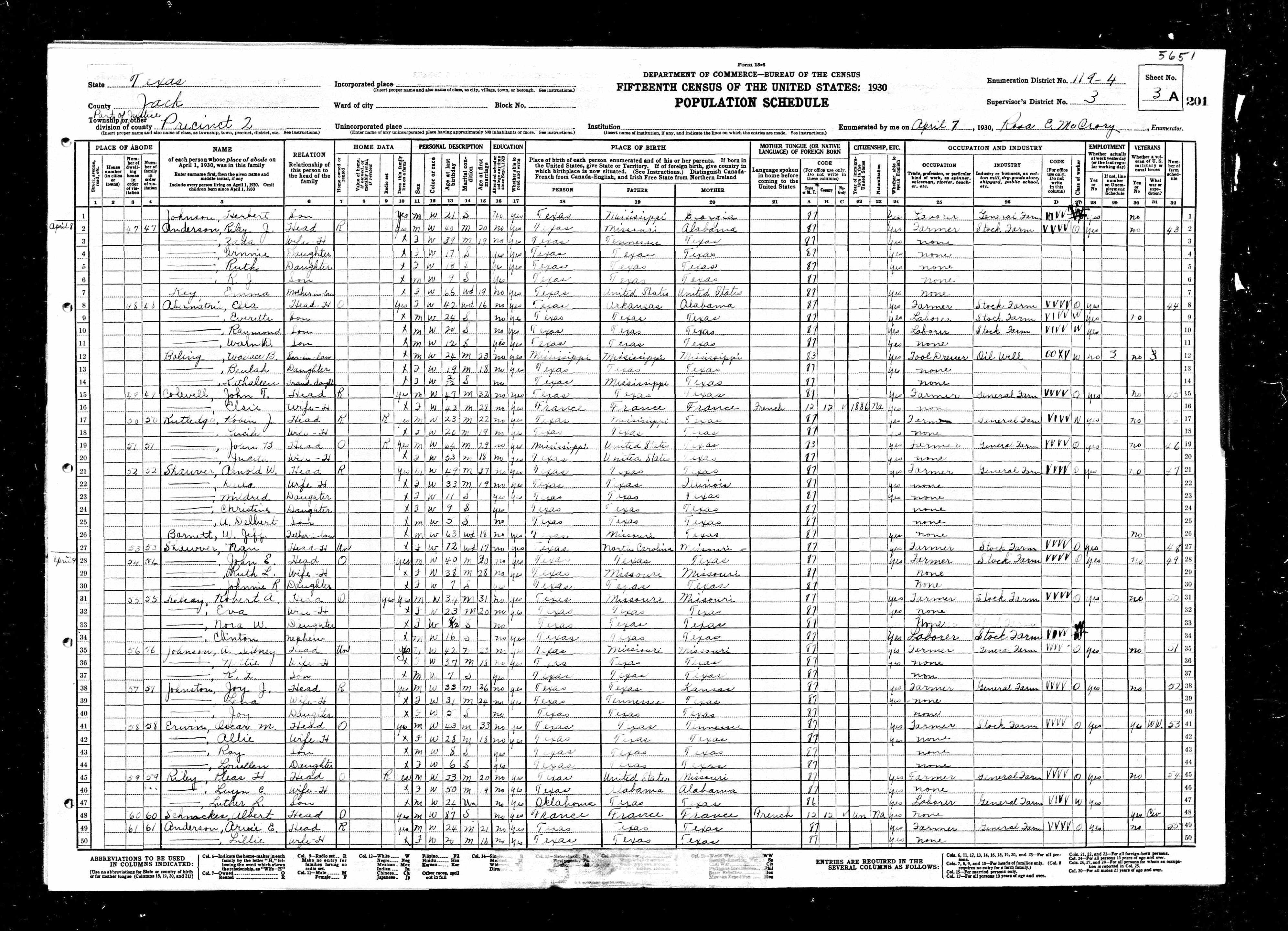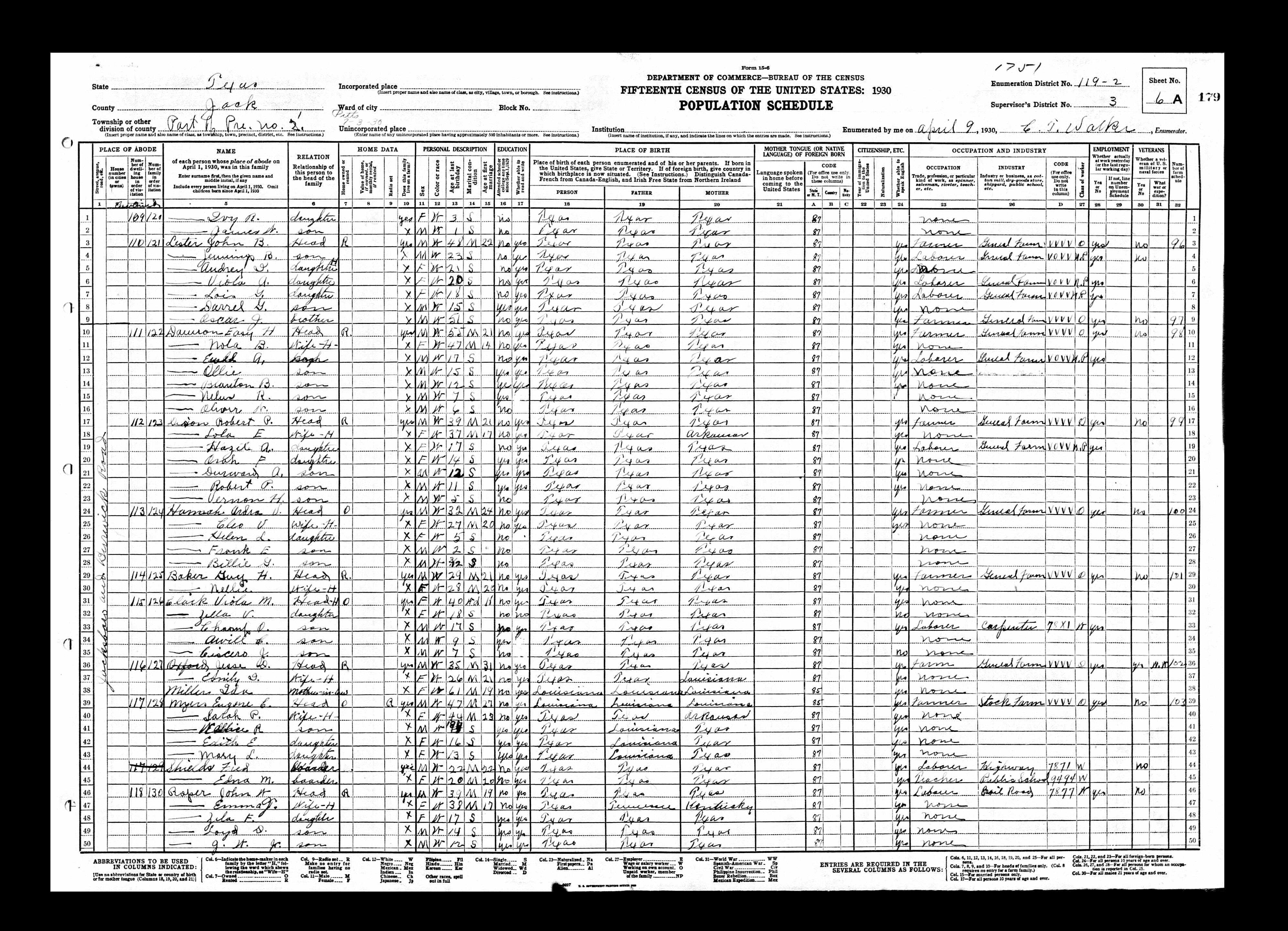 | Links to Large Images of Handwritten 1930 Census Pages | |||||||||||||||||||||